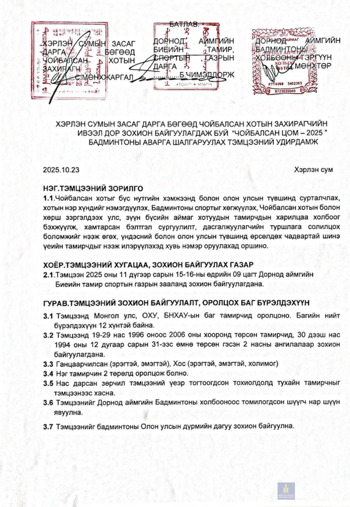 ИВЭЭЛ ДОР ЗОХИОН БАЙГУУЛАГДАЖ БУЙ "ЧОЙБАЛСАН ЦОМ - 2025 "